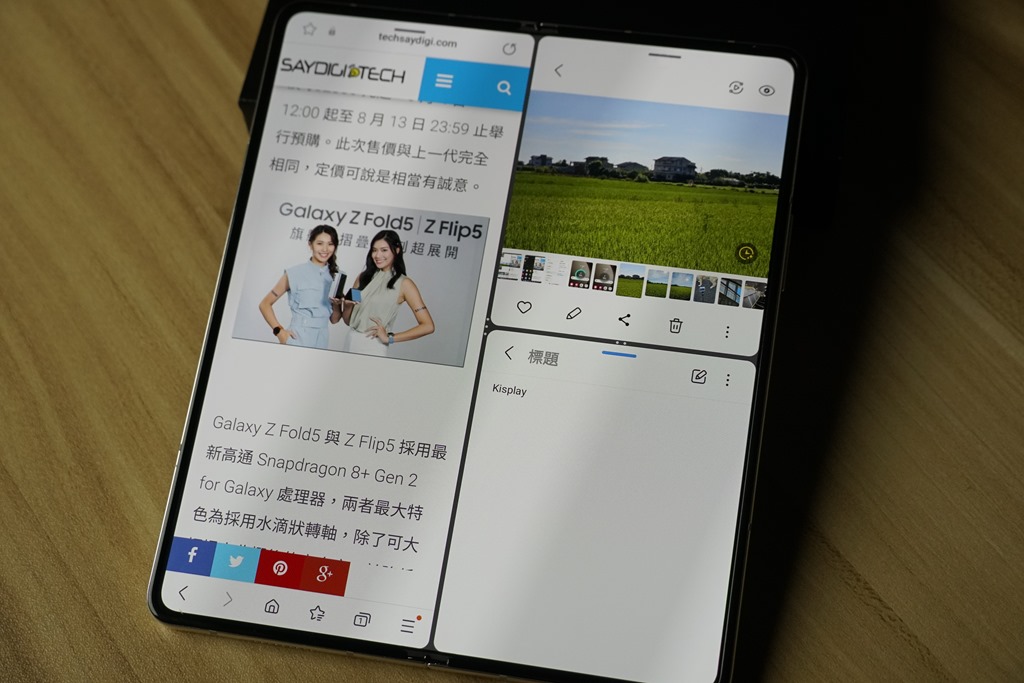 精緻時尚感與摺疊小巧便攜是 Flip 最吸引人之處,而展開大螢幕的多工商務體驗就是 Fold 的強項,在展開 7.6 吋大螢幕下,除了有更大的畫面瀏覽空間外,能將畫面一分為多的應用,更是方便。