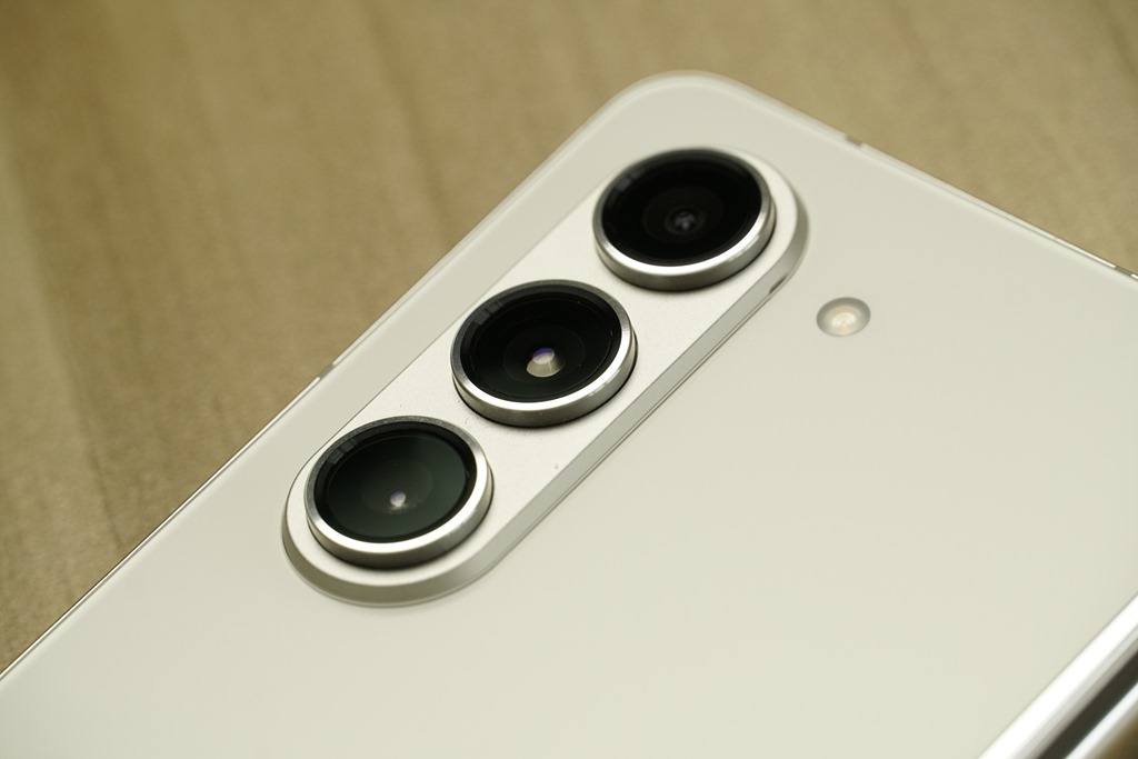鏡頭為三鏡頭配置,包含 5000 萬畫素 F1.8 OIS 主鏡頭、1200 萬畫素 F2.2 123 度超廣角鏡頭以及 1000 萬畫素 F2.1 OIS 3X 望遠鏡頭(OIS、F2.4)。內螢幕同樣配置F1.8 400 萬畫素螢幕下鏡頭 ,外螢幕搭配F2.2 1000 萬畫素開孔鏡頭。