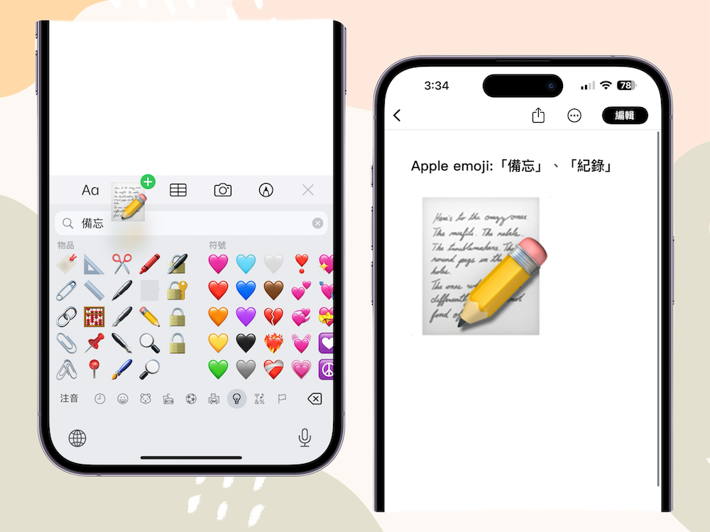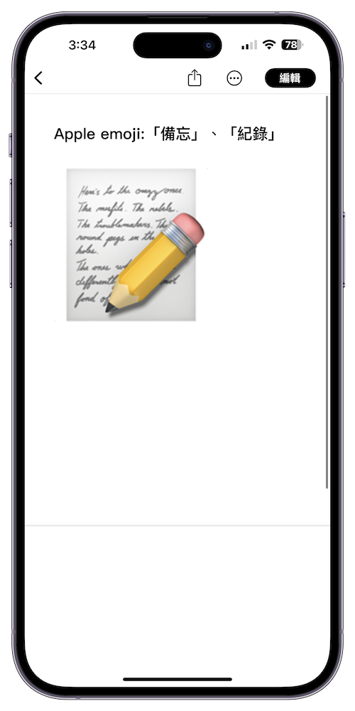 當我們在 iPhone 上輸入「紀錄」、「備忘」等字詞時,旁邊就會出現一個有著黃色鉛筆在紙上書寫的 emoji 圖樣,沒想到那看起來相當模糊,還以為是隨便的線條書寫,竟然是 Apple 在 1997 年所拍攝的「Think Different(不同凡想)」的英文廣告台詞,而且這段台詞也曾由賈伯斯本人親自配音,還寫入賈伯斯傳記中。