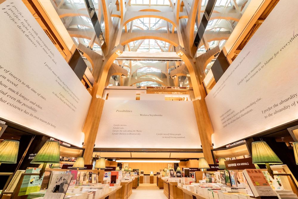 從 1F 大廳搭手扶梯緩步直上 4F,在自然天光下享受舒適的閱讀空間。走入 4F 書店迎來的是 30 米挑高天井,可在「光合廣場」的日常暖陽中沉浸書香,或是漫步在「50 米閱讀大道」探索知識高地;入口兩側以歐洲經典書店為概念的「閱讀窗景」精選經典人文及文學作品,未來亦將舉行作家迷你沙龍;「多媒體閱讀區」串聯線上下虛實整合,可連結「誠品線上」體驗專屬導購服務,也可透過導連迷誠品Podcast、YouTube及誠品Live現場等多媒體影音,掌握閱讀趨勢脈動。兒童書店則打造親子共讀的「探索小學校」,以多元學齡與數位學習為主軸,定期更新繪本主題牆,並引進科技共學讀本及科學玩教具,未來也將規劃親子手作、肢體開發、兒童說故事等五感學習活動,還有獨家設置的「嬰幼兒質感選品店」,提供新手爸媽最佳後援。為滿足周邊學區及上班族機能需求,誠品文具則提供豐富的基礎事務及仕事文具,還能客製鋼筆及墨水,並設有Gift+職人禮品包裝服務。
