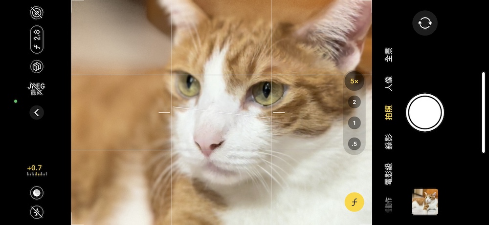 如果想要特定的取景,人像照功能現在也支援持續變焦。我們可以在「拍照」模式下使用變焦輪,或者在「人像」模式下用手指開合縮放。左上角也會出現輔助對焦框讓我們參考。
