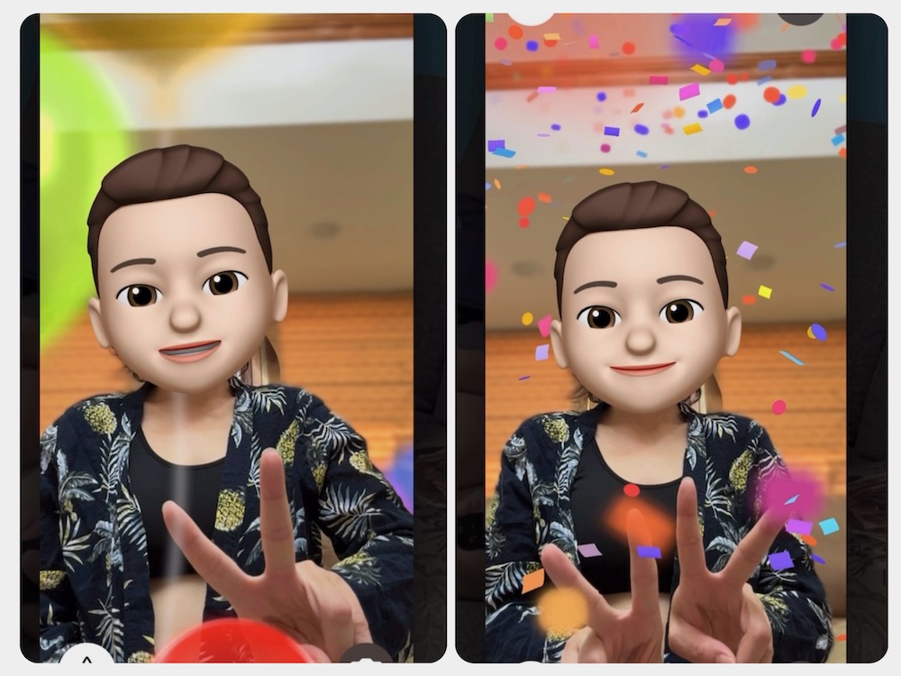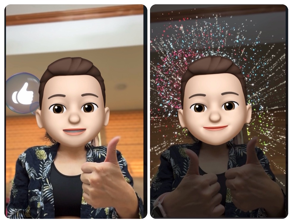 在 FaceTime 對話中,對著螢幕比出一個讚,旁邊也會出現一個讚的符號; 比出兩個讚,背後就會放出煙火。