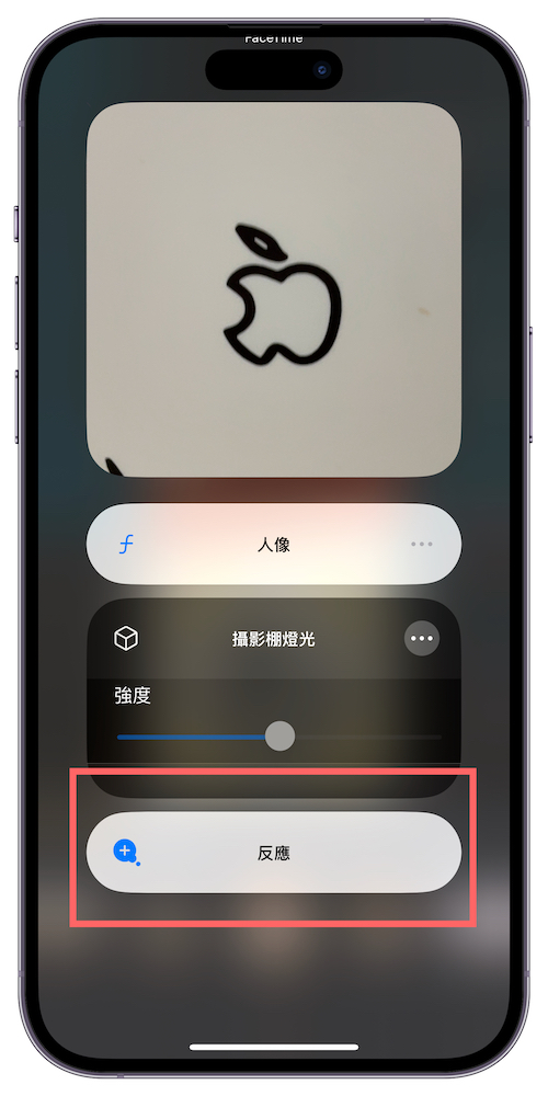 在使用 FaceTime 時從螢幕右上角向下滑動打開「控制中心」,在 FaceTime 選項裡開啟「反應」功能。