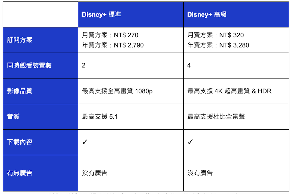 迪士尼旗下影音串流平台 Disney+ 稍早宣布將自 11 月 1 日起在台灣推出全新方案與價格,分別為每月 NT$270 或每年 NT$2,790 的標準方案與每月 NT$320 或每年 NT$3,280 的高級方案。