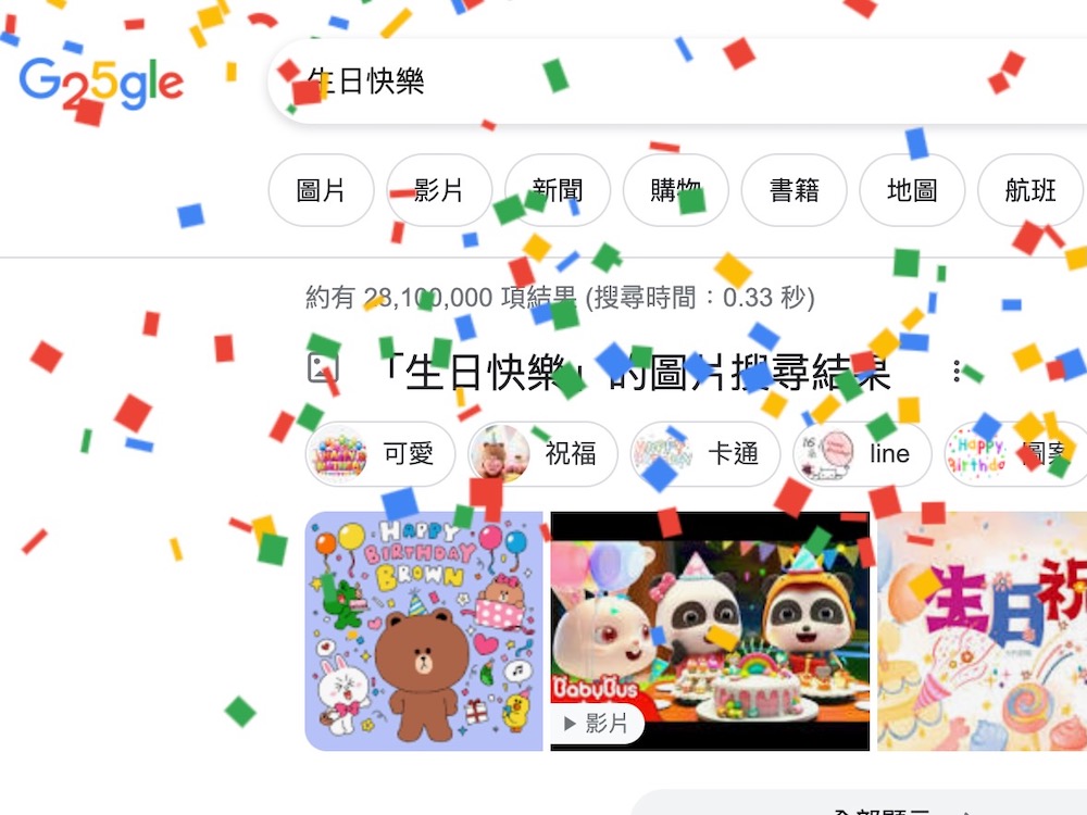 現在 Google 搜尋的 Doodle 除了展示這些年來 Google 標誌的演變,如果在搜尋列上輸入生日相關的主題,還會從網頁上方撒下彩蛋唷!