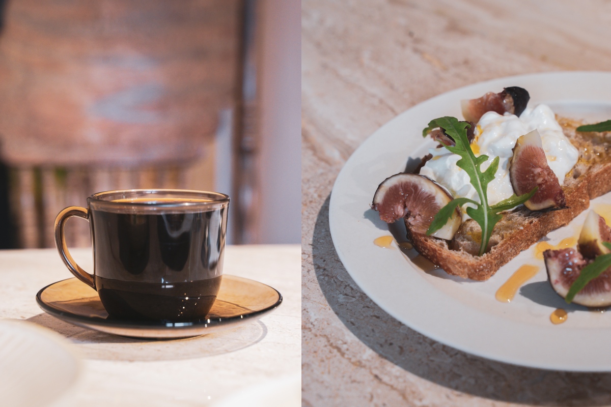 餐點提供輕食、飲品與甜點,有一些季節限定的餐點,造訪時是提供酸奶無花果開放三明治,其他還有土耳其蛋、冷燻鮭魚水波蛋開放三名治、起司蛋三明治。甜點有提拉米蘇、蘭姆焦糖香草布丁、巴斯克乳酪蛋糕,還有季節限定的安茹白乳酪甜點冷盤,當時菜單上寫的是芒果,但我們去的時候只剩下無花果,還是點了,結果點的餐點上桌後都是無花果,耶~