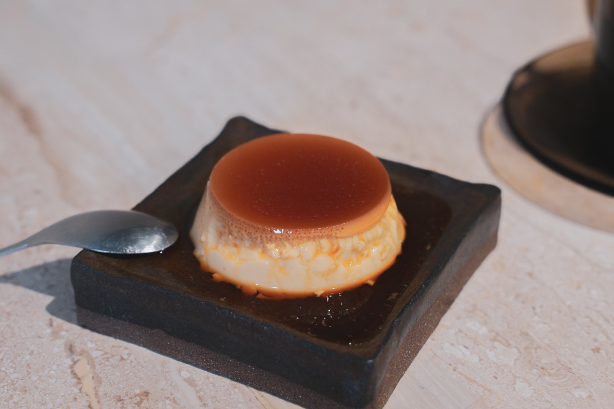 使用日本上白糖、天然香草莢、台灣小農鮮奶製作。是一款口感扎實的布丁,帶有淡淡蘭姆香氣,蛋香味也比較明顯。可能前面的乳酪冷盤太驚艷,布丁相較之下就有點普通。不過呢這次喝了兩杯咖啡,不論是奶咖還是手沖都覺得很好喝!尤其在陰涼的天氣,來一杯熱奶咖,就是幸福。