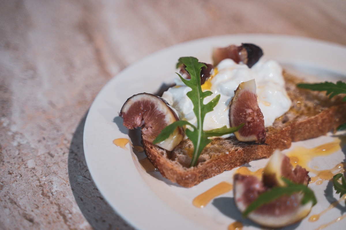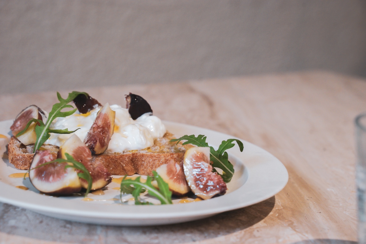 酸種麵包抹上酸奶,擺上新鮮無花果,淋上蜂蜜,最後搭配幾片芝麻葉,就是我樸實無華的快樂哈哈哈哈哈。很喜歡酸奶搭配無花果的組合,每次吃到都會讚嘆這是什麼神搭配,細細品味後更覺得淋上蜂蜜是錦上添花,因為無花果淡淡的香氣與酸奶配在一起時,酸奶的味道會特別突出,而加入蜂蜜的香甜又完美平衡了酸奶的酸香。薄脆帶有點韌性的酸種麵包與芝麻葉絕對是無花果+酸奶的好朋友,就算吃完會有一種在家也能自己做的感覺,還是想要吃。