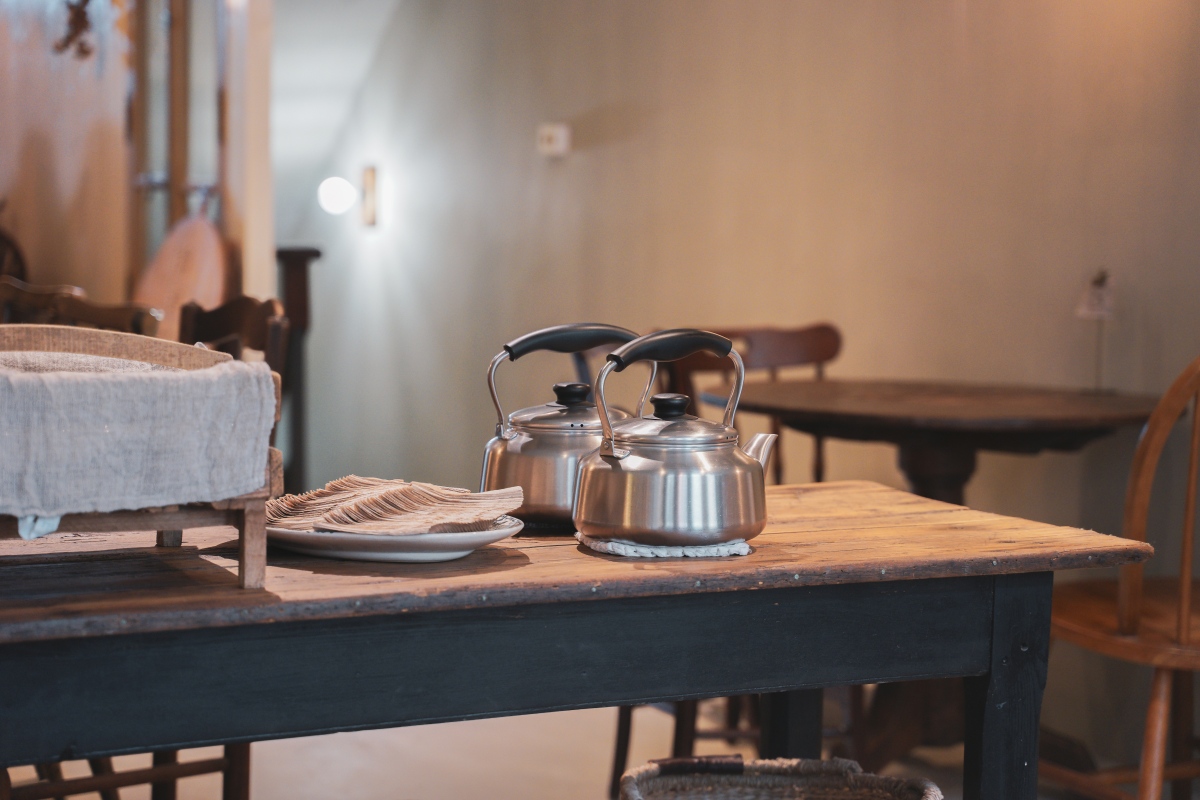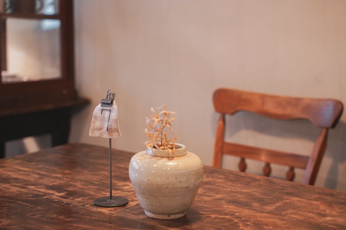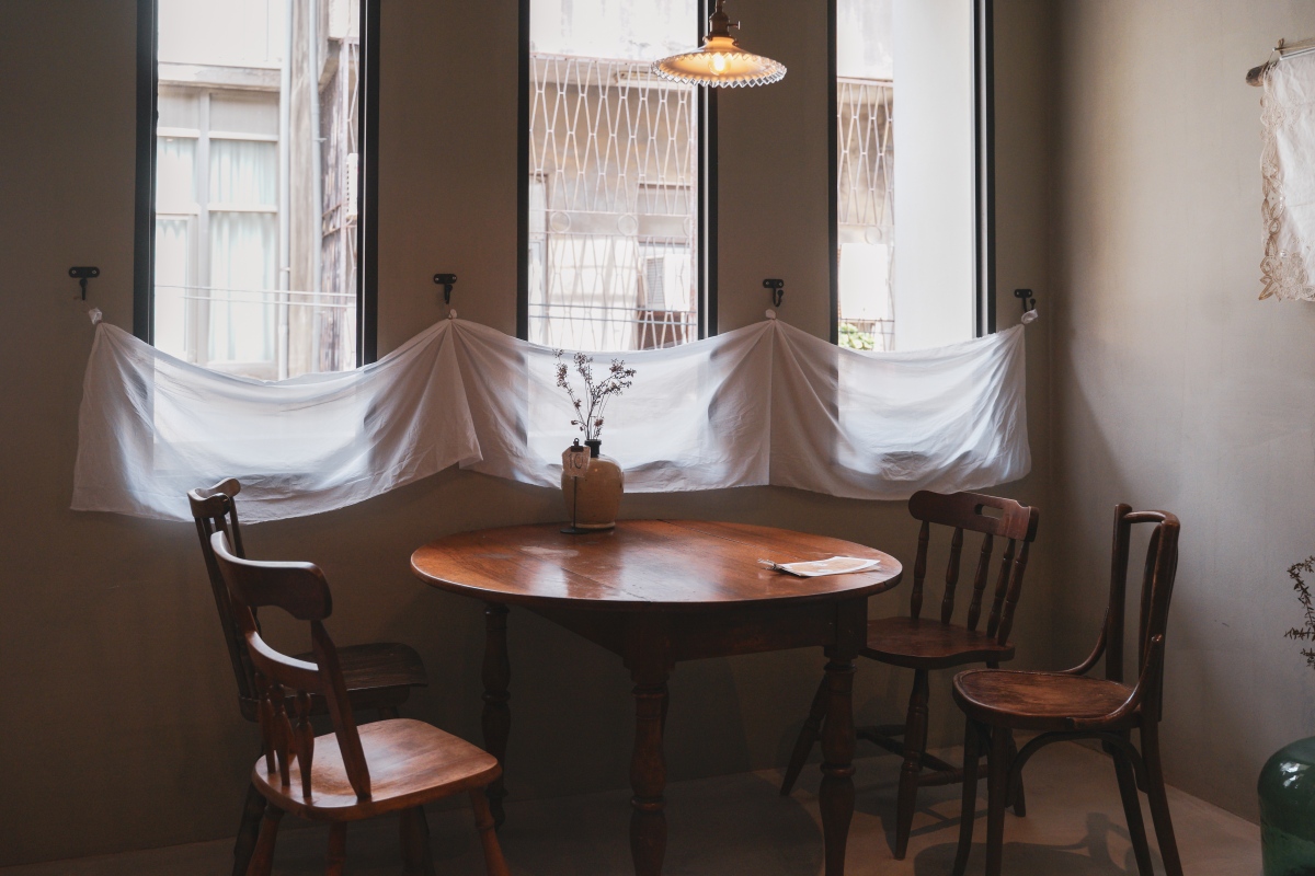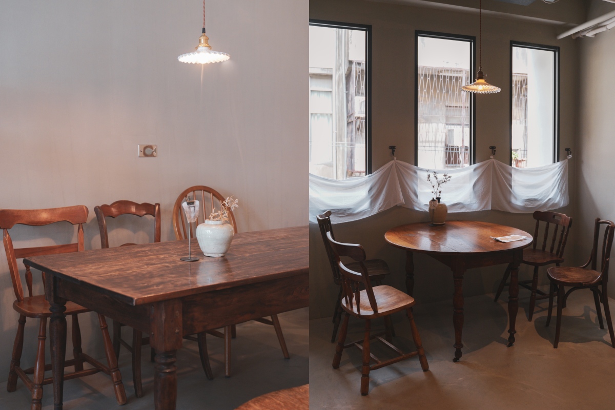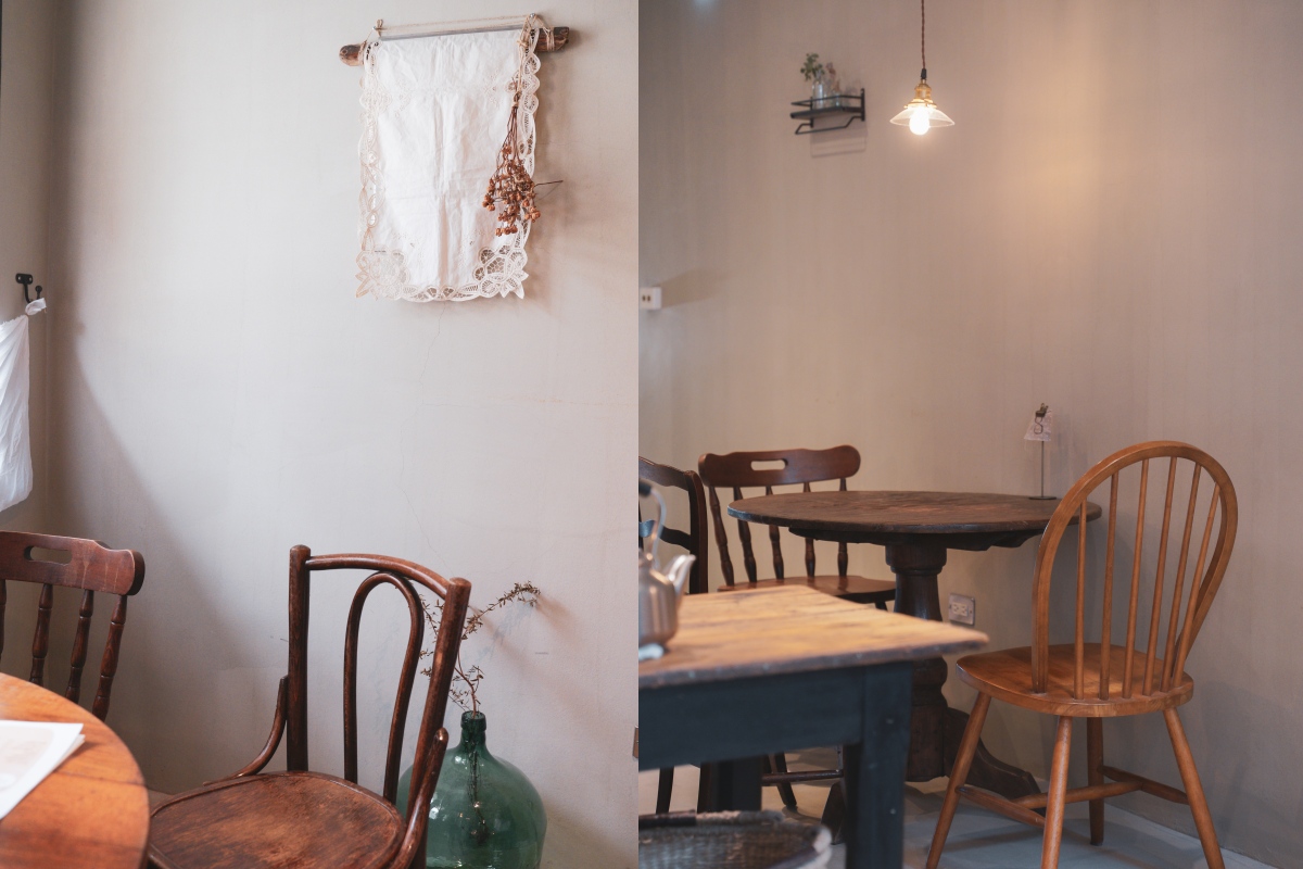 用餐空間以深木色調的長桌與圓桌搭配一些復古的燈座、燈飾以及餐飲容器,整體氛圍感是很不錯的!另外二樓除了靠窗位採光比較好一些些,後面的位子是以室內黃光為主,桌距有點近,介意的人要自行斟酌唷!因為我們那天後來客滿,很大桌也坐滿,室內聊天聲音蠻大的,我都快聽不到我朋友講話的聲音了哈哈哈哈哈。