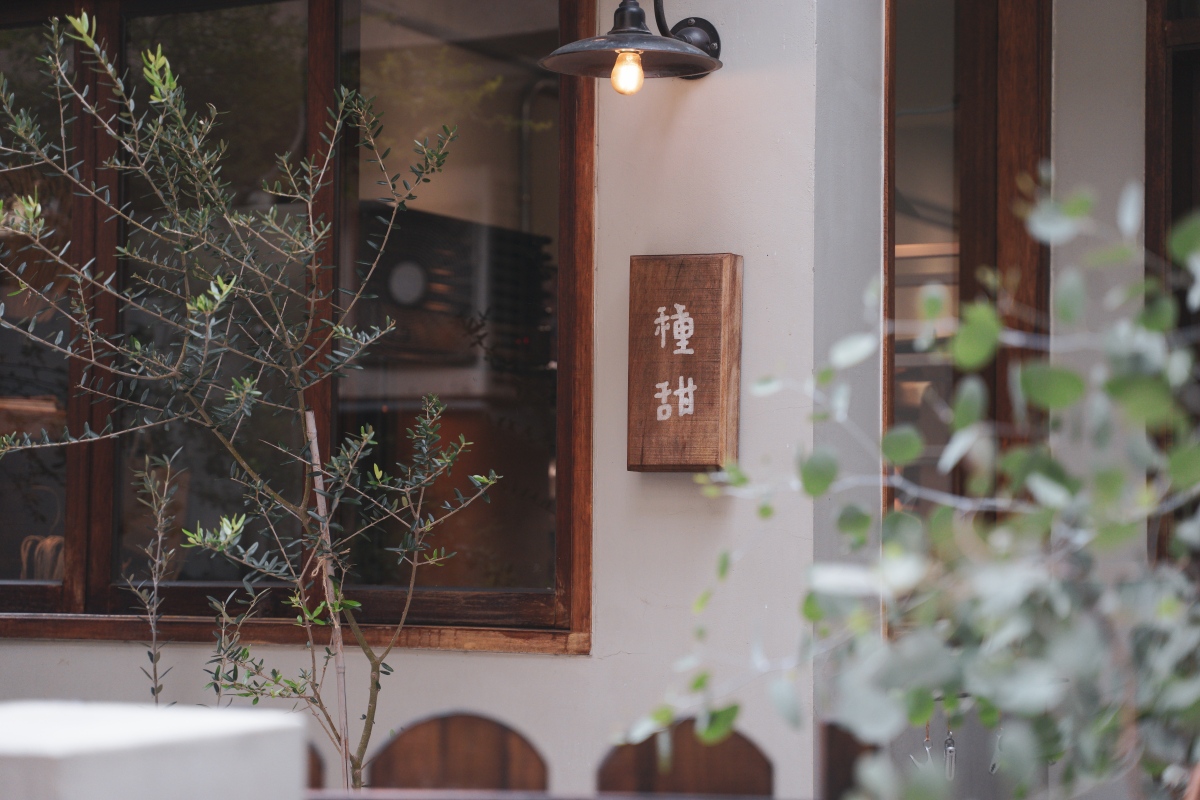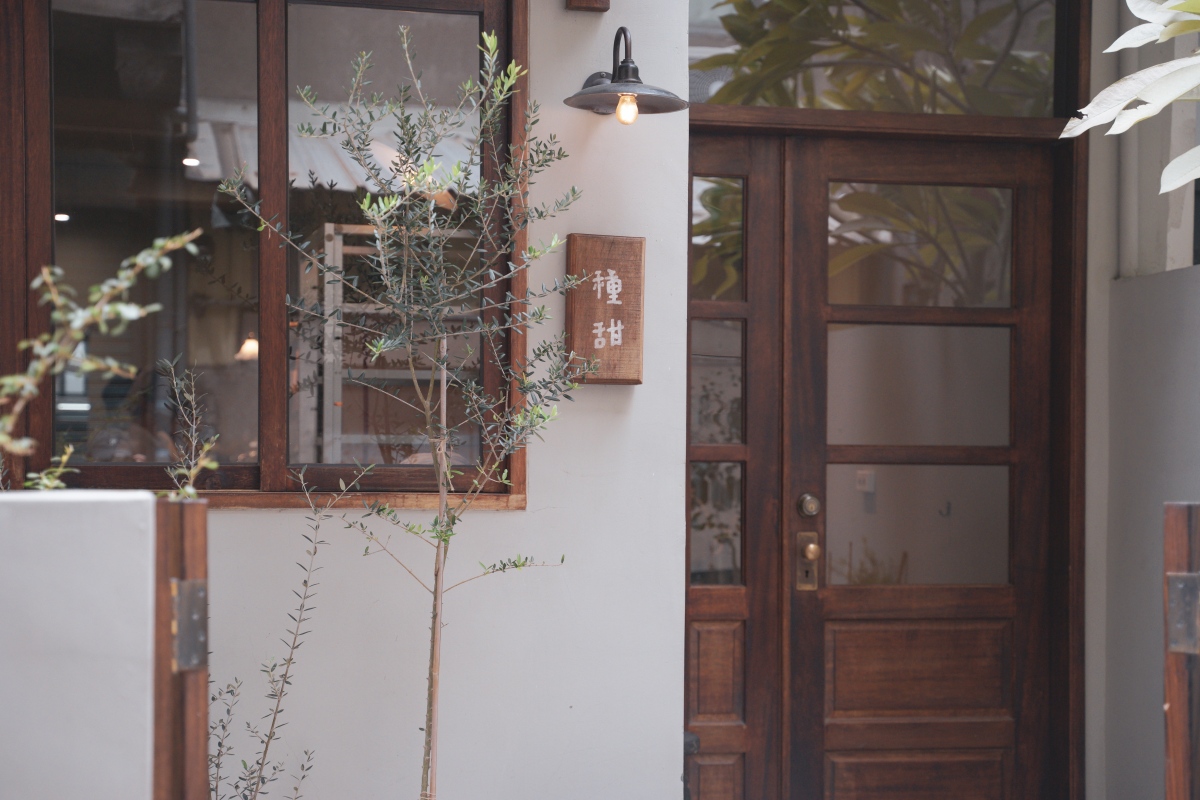 種甜在新竹市區,從芙洛麗大飯店對面的鍋牛火鍋隔壁小巷子走進去,第二間就會看到種甜。深木色的木門與小小的招牌寫上店名,好可愛啊!門口還有一張長凳,不論是等待休息還是拍幾張照片都很讚。每次走近門口都有一種造訪人家裡的感覺,前面一小塊空地彷彿迷你庭院,擺放了植物與休息的板凳,配上木柵欄的設計像極了電影裡才會出現的鄉間小屋,真的好萌。