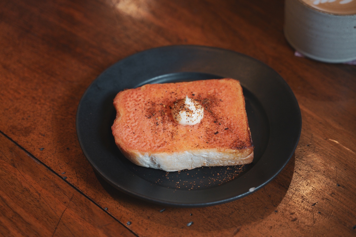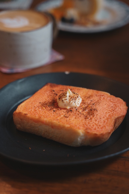 將美乃滋均勻抹上明太子厚片,一口咬下感受酥脆又鬆軟的厚片,明太子美乃滋鹹香濃郁撲鼻而來,吃了一口還想接著吃下去,非常推薦喜歡鹹食的人點來試試,香氣十足微辣重口味系的美味。