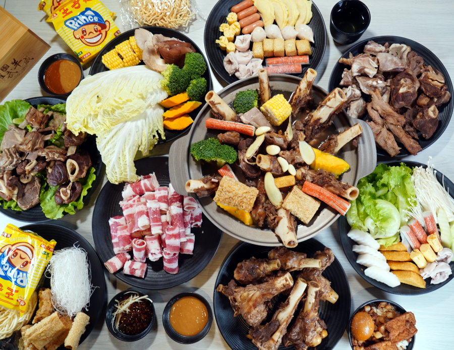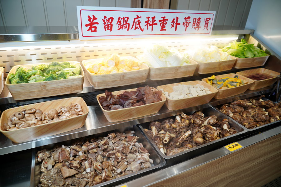 ▼餐點自助吧,不管是羊肉、牛肉、豬肉、火鍋料、蔬菜等食材通通都是自取吃到飽,不過大家可要量力而為,如果留太多鍋底的話就得秤重外帶購買,也是避免浪費食材!