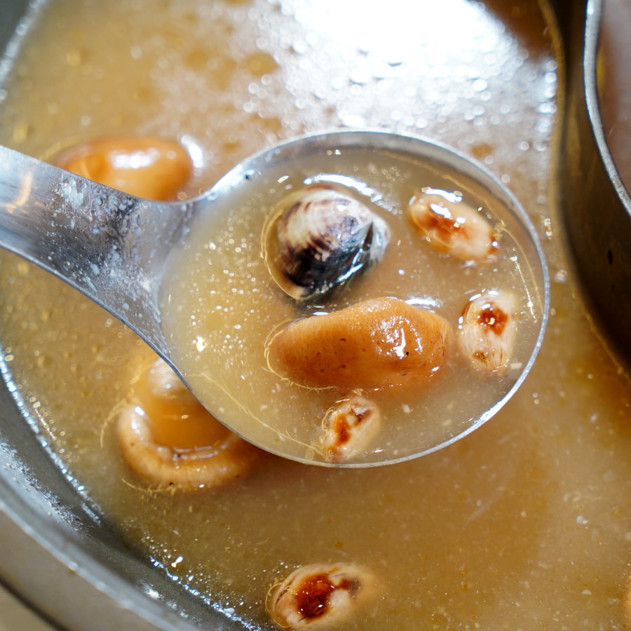▼鮮蒜羊肉湯,以炸蒜頭、薑片搭配蛤蜊下去提襯鮮味,喝起來鮮香味美,還帶點蒜酥香氣,也是我們很喜歡的湯頭之一。