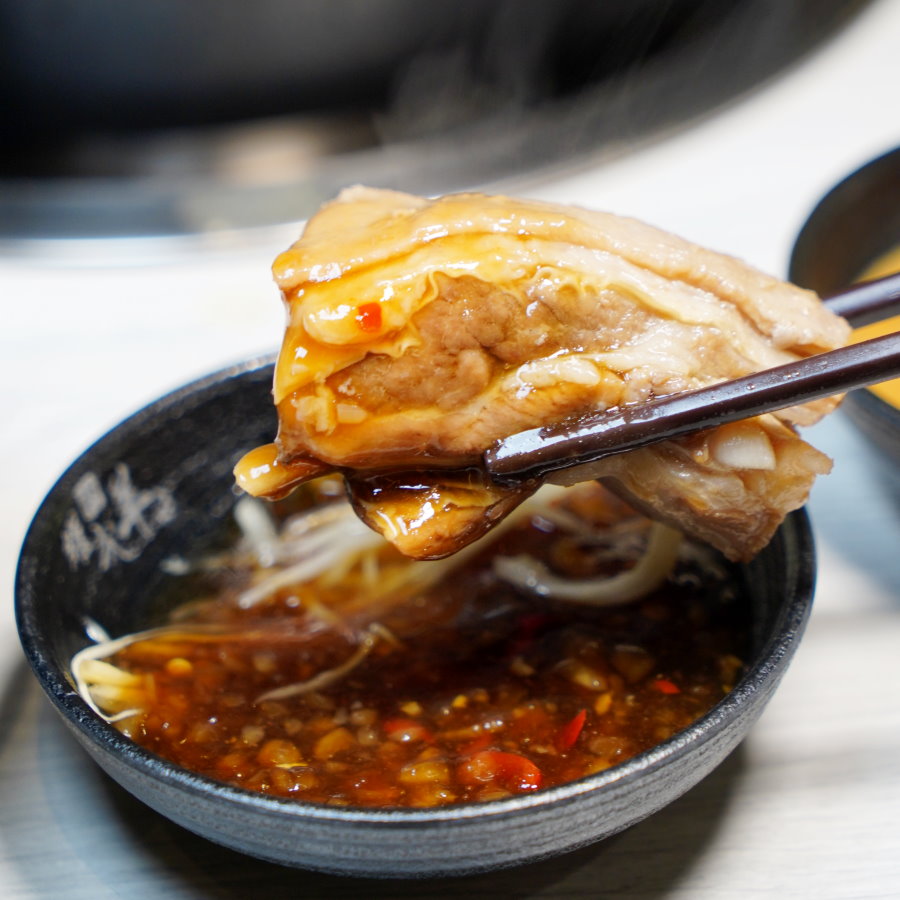 ▼羊嫩筋也是我們很愛的部位之一,也很適合懶得啃骨頭的朋友享用!雖然是薄片狀,吃起來帶點半筋半肉的口感,兼具柔嫩又軟Q的多重層次,單吃或搭配蒜蓉辣椒醬都很合拍。