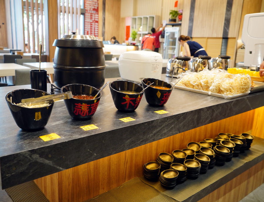 ▼中間為主食、飲品、醬料、湯頭、餐具自助區,有需要的朋友都可以自行取用。