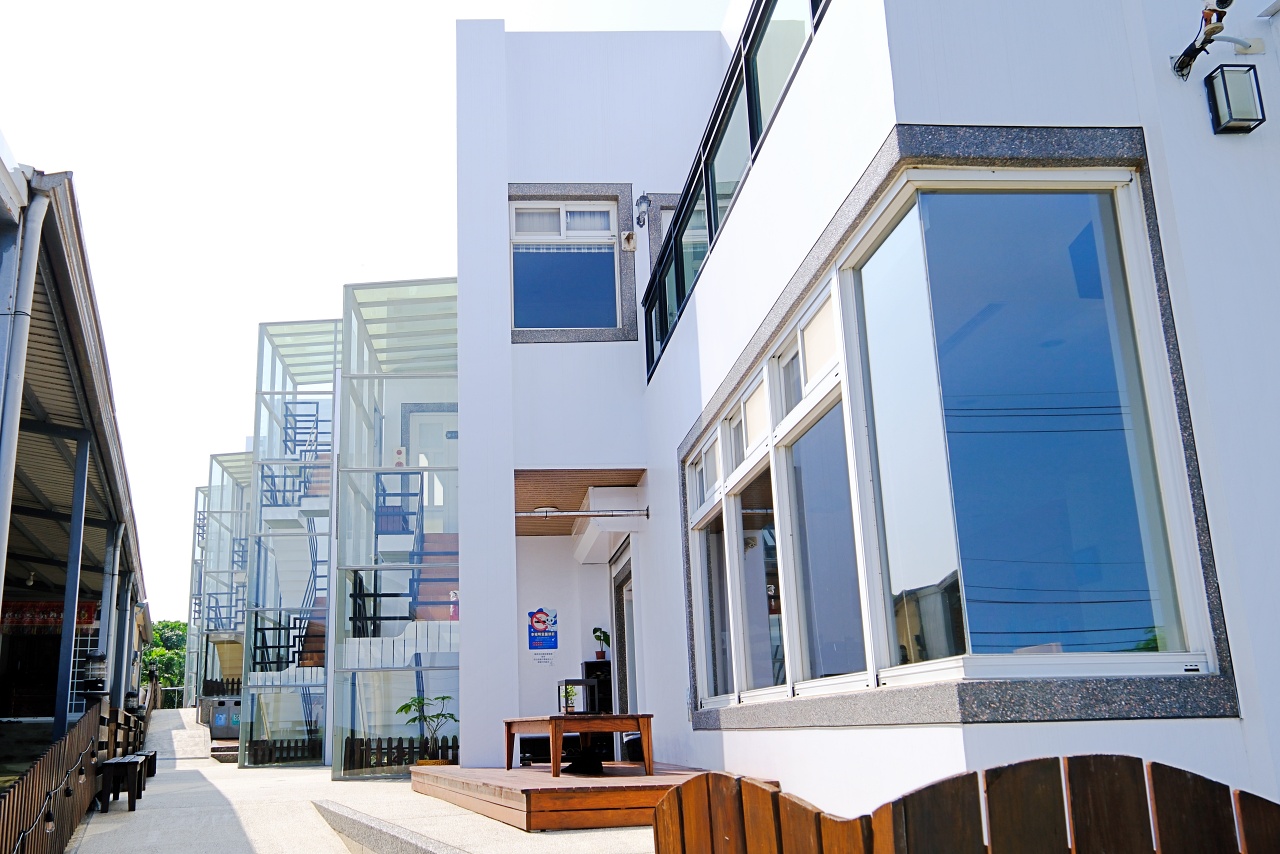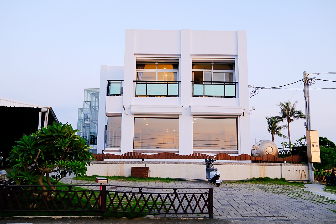 ▲外觀兩層樓的白色系民宿有希臘建築物的fu,建築物後方還有幾棟建築,外觀用玻璃帷幕打造。民宿提供雙人、三人、四人、六人、八人的房間,超適合包棟。比較有趣的是房間名稱用十二星座來命名。
