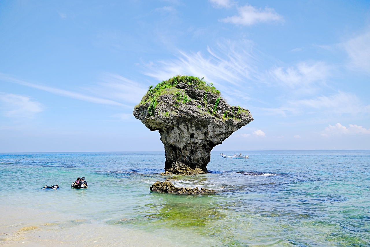 整個小琉球上最知名的景點非它莫屬了!天氣好的時候可以拍到花瓶岩還有藍天白雲、海天一線的美景,是浮潛、潛水的熱門下水點。幸運的話可以在海裡跟海龜共游,沒下水的話也可以在這裡踏浪拍拍美照。
