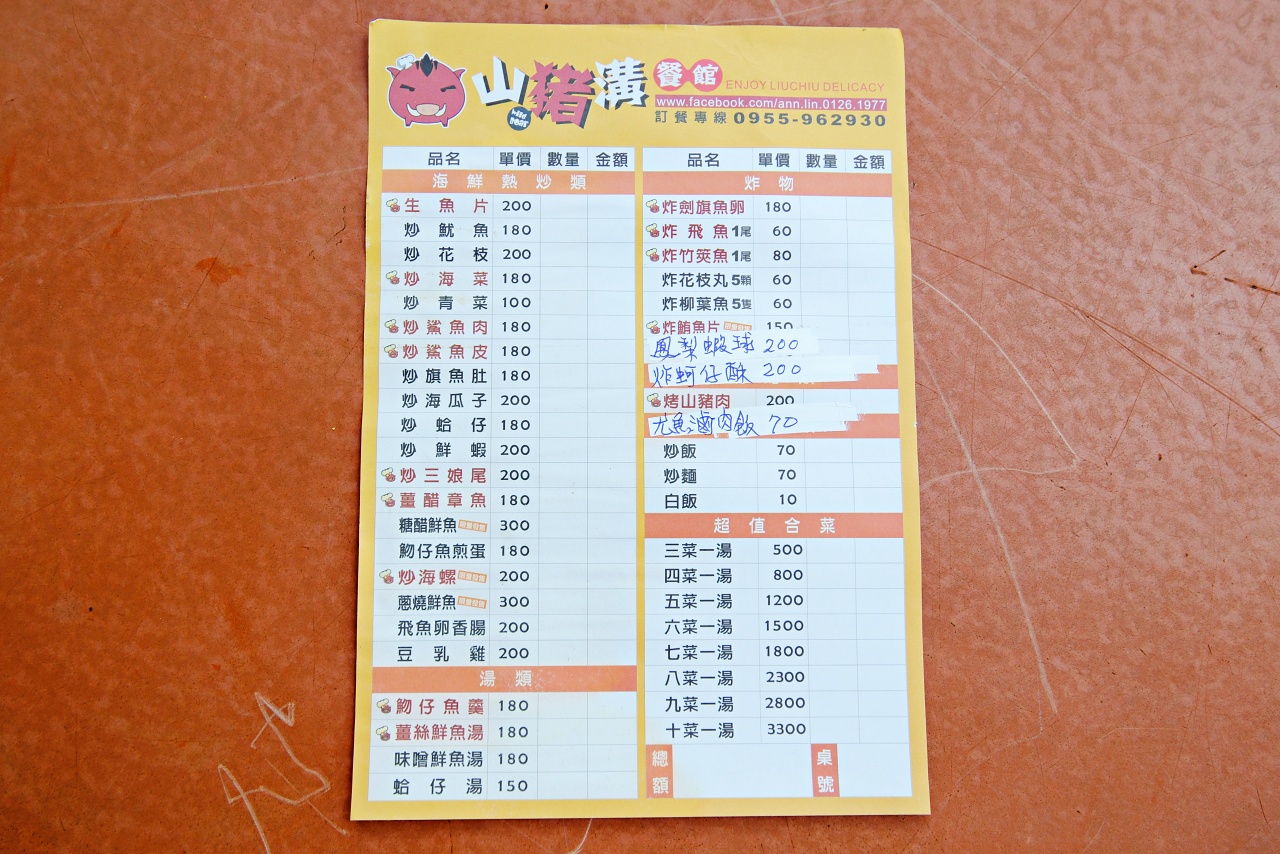 小琉球在地的【山豬溝餐館】從民國96年開業至今,就在熱門景點山豬溝生態步道的入口處。這裡規劃一整排的路邊小吃,【山豬溝餐館】就在最左邊的大樹下,老闆與老闆娘很熱情,賣的是在地特色料理,不只在地人喜歡,許多外地遊客也很推薦。有許多隱藏版美食,連高雄的好友敦小蓮都極力推薦。餐點大多數是海鮮料理,整體份量是3-4人份,加上價格平價,很多人來到小琉球旅遊會特地揪三五好友一起來這裡用餐。