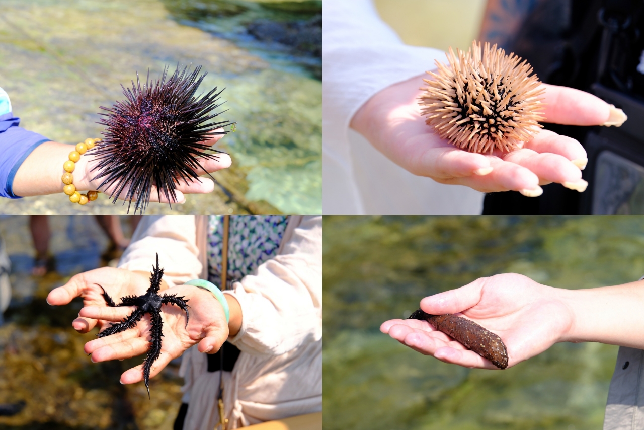 ▲屏東縣政府在「杉福」和「漁埕尾」兩處自然保育示範區的潮間帶設置管理站,同一時段限額300人,由於保育做得完善,站在潮間帶就可以肉眼看到不少顏色特殊的小魚、海膽在周圍。解說人員會透過讓每個人親手體驗、觸摸的方式,更認識這些可愛的海洋生物。