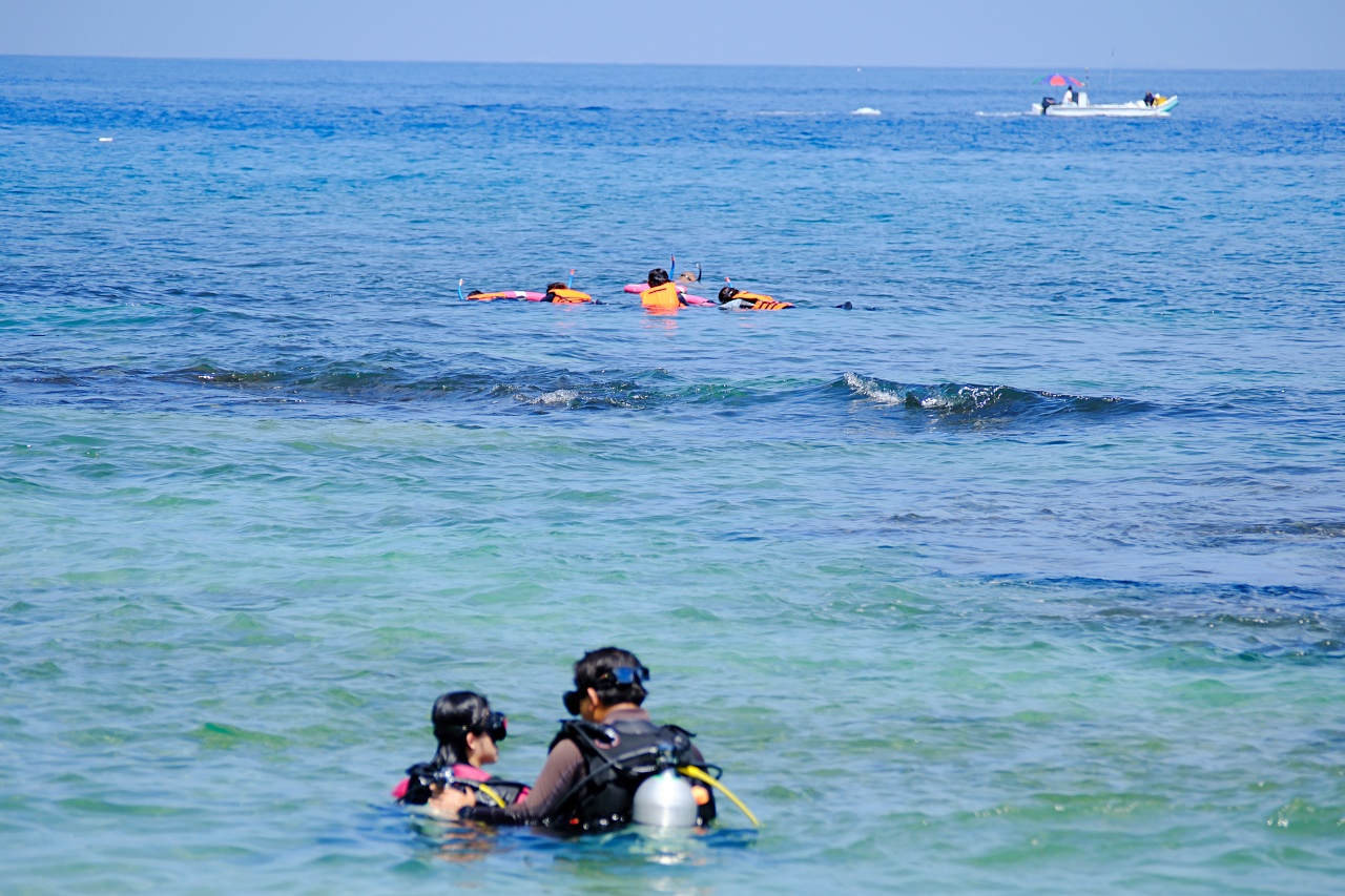 ▲天氣好的時候有不少遊客前來浮潛,周圍也有在海岸邊釣魚的船隻。