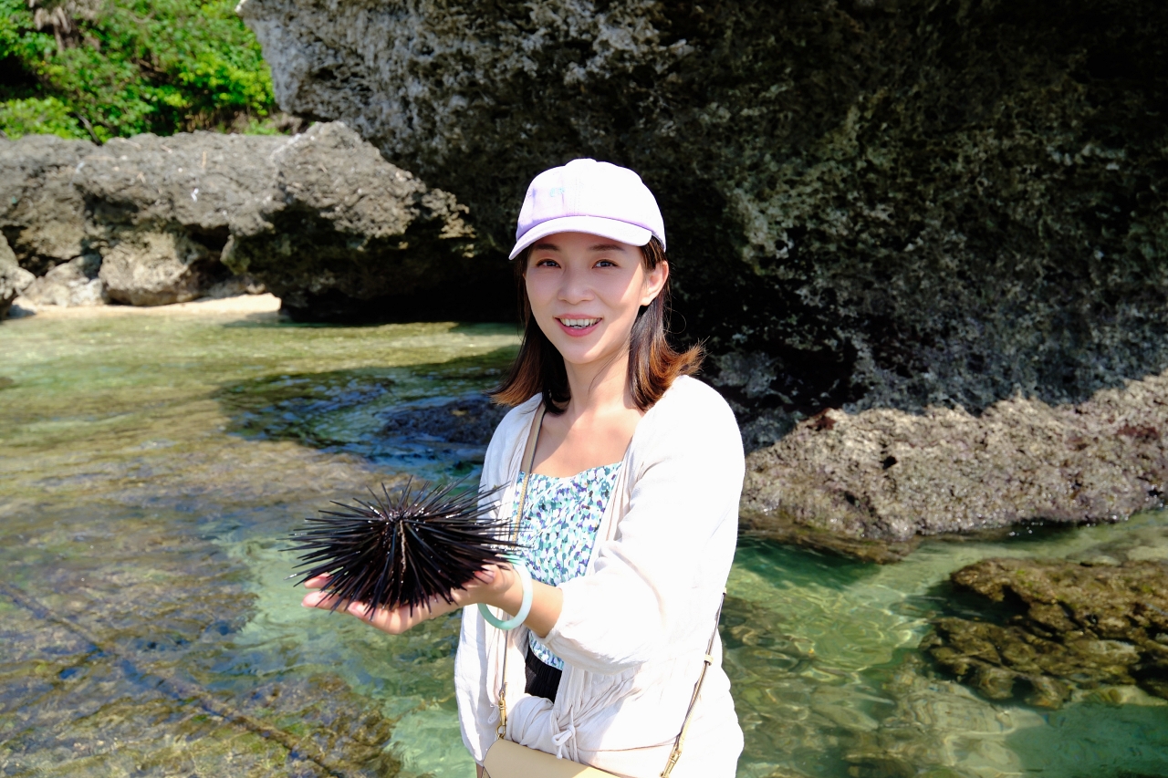 大家都知道來小琉球不能錯過浮潛,有機會看到超可愛的海龜,但其實海洋生態豐富的潮間帶有許多特別的海中生物,民宿的套裝行程裡面就包含了免費生態導覽,我跟漢斯超熱血參加了中午的生態導覽,有興趣的話記得做好防曬,小琉球的太陽太熱情啦。