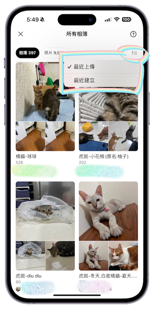 步驟 2、裡面的「所有相簿」中,可以分為「最近上傳」、「最近建立」兩種排序方式。