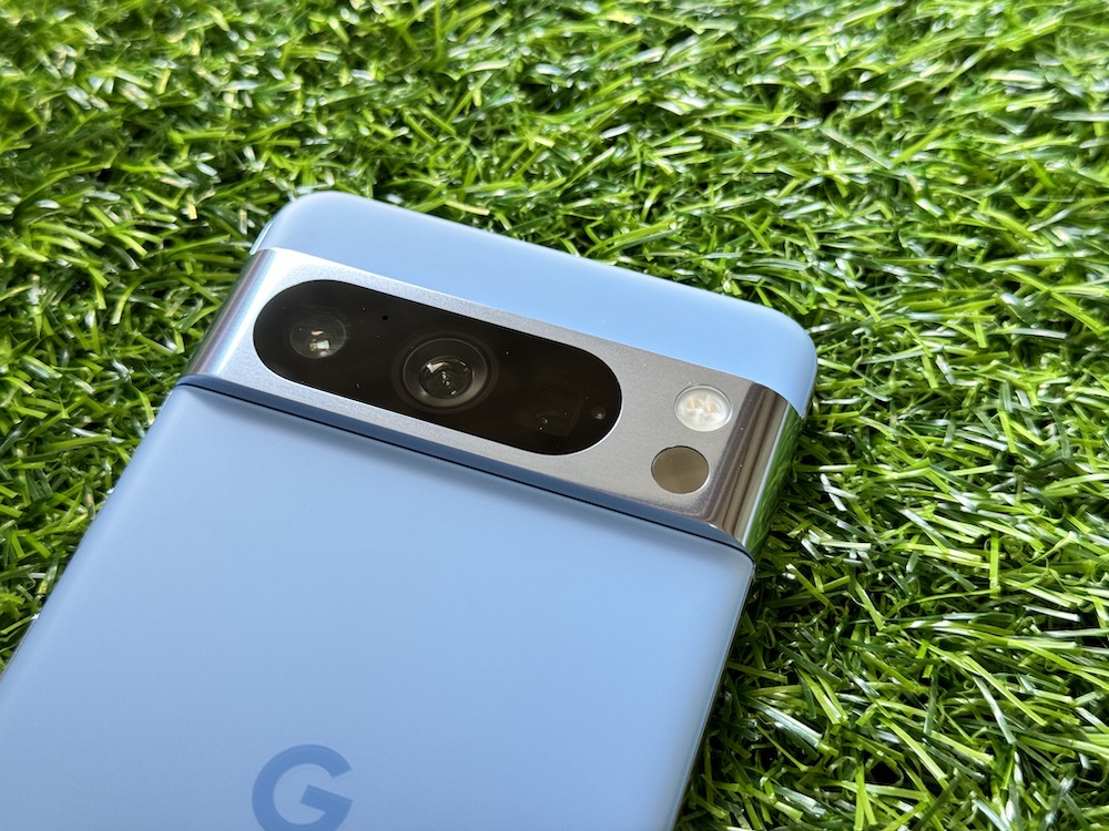 Pixel 8 Pro 與 Pixel 8 都有微距模式,不過它也加入一個 4800 萬畫素 5X 望遠鏡頭,支援 OIS 與最高 30X 數位變焦,同樣也具備雷射對焦、光譜與閃爍感應器。