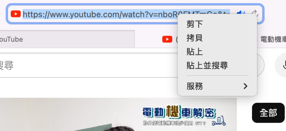第一步驟:複製想要下載的 YouTube 影片網址。