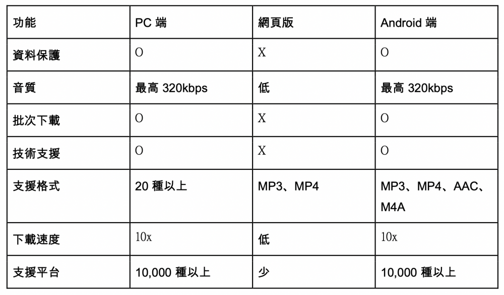 由於 YT Saver 提供超多不同種類的工具,既有電腦版、又有 Android 手機版、還有網頁版本,到底這三種工具差異在哪呢?