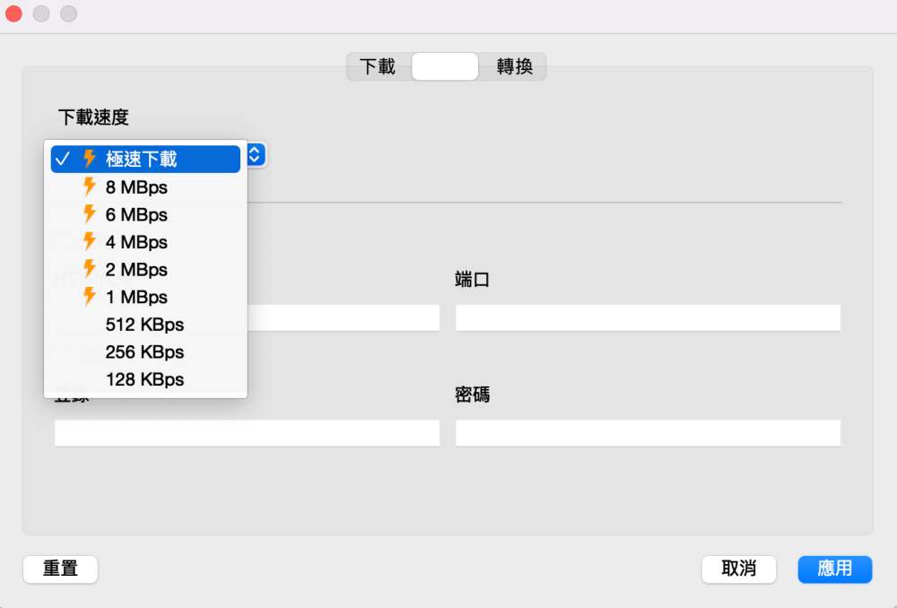 下載速度也可以自由設定 128KBps 至 8MBps,或是套用極速下載不限制下載速度。