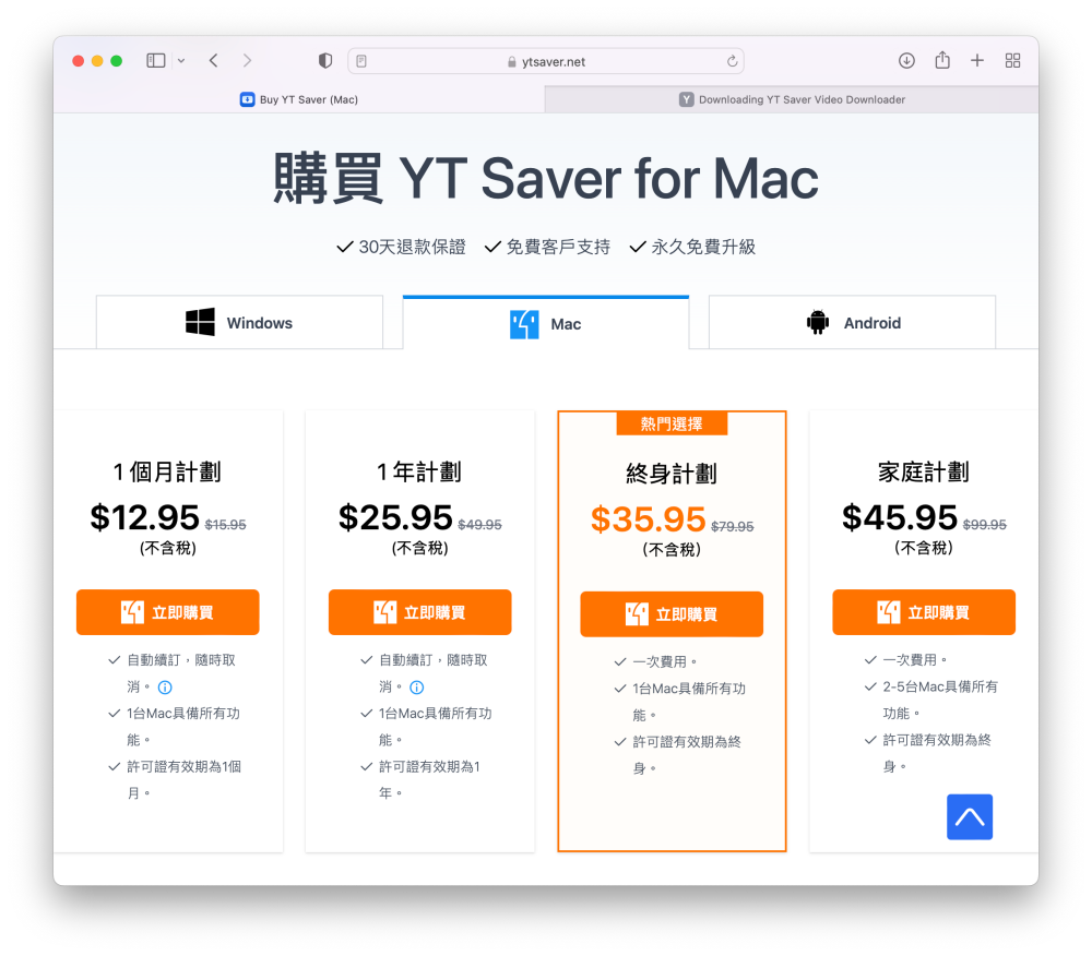 目前 YT Saver 提供免費版和付費版的差別,免費版為試用版,可以提供 3 次下載以及 1 個播放列表、可輸出的格式也有限,付費版則沒有任何限制,想要下載或轉換多少影片都可以,且要輸出高解析度或是高品質的音樂也沒問題。