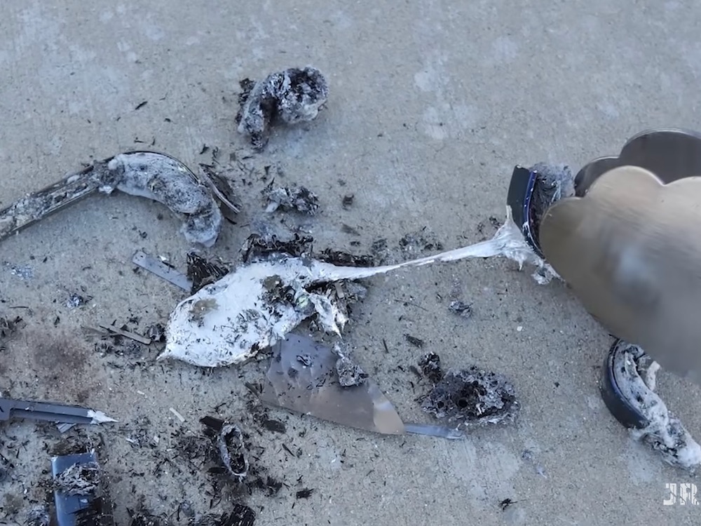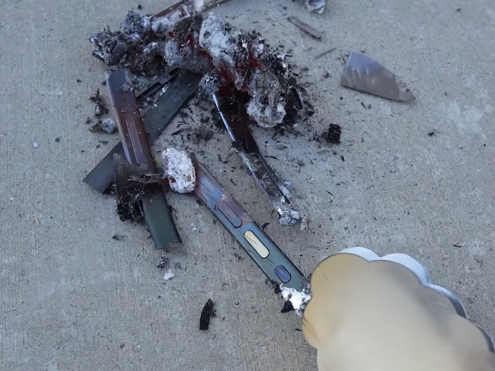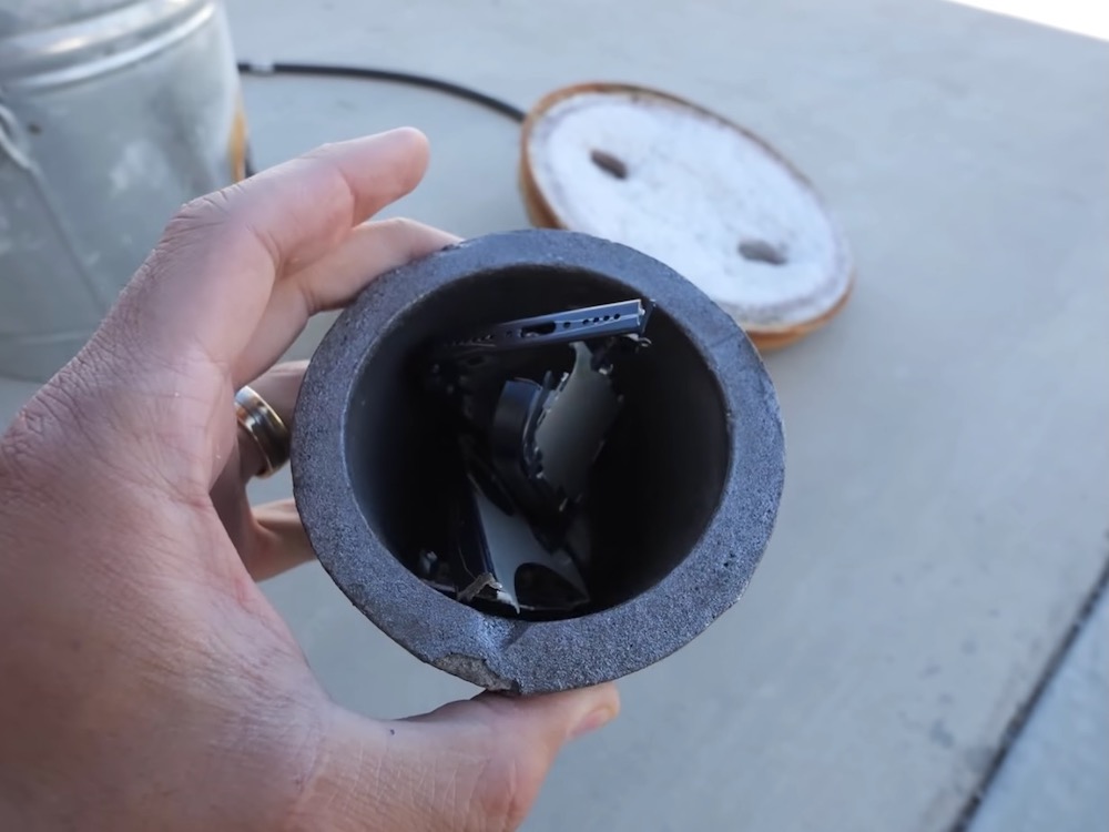 最後經過了一段時間等待熔化,也發現保留了外框、動作按鈕、電源按鈕、音量按鈕、USB-C 孔等鈦金屬材質零件,就連熔化成液態狀的鋁金屬還殘留些許鈦金屬材質薄膜。