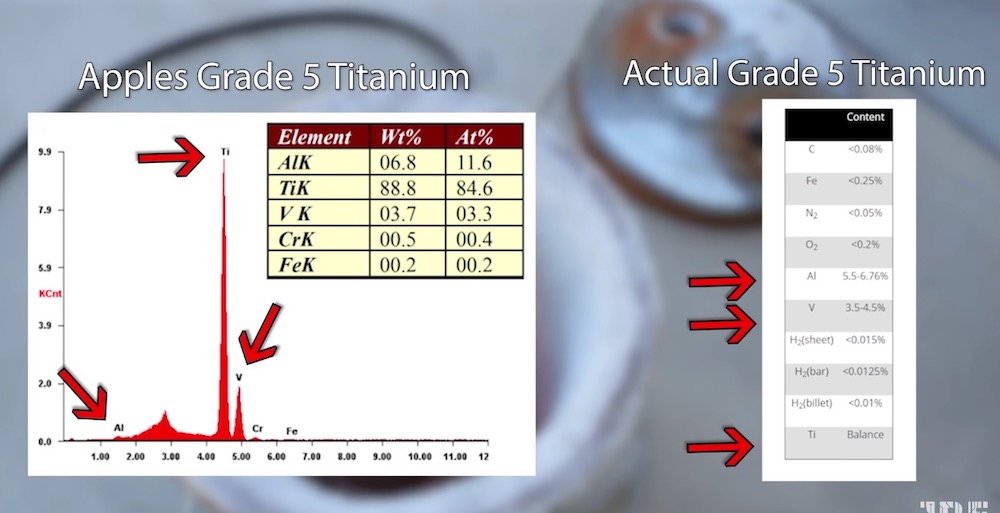 在實驗的過程中,他們也透過 XRF 實驗室提供的機器來為金屬進行“身份驗證”。驗證的方式就是透過 X 光線打在金屬上來解析每個金屬的成分,因為每個金屬中都由不同成分的元素組成,這也成為每個金屬獨一無二的身份象徵。所以透過機器提供的數值發現,蘋果這次為 iPhone 15 Pro 系列採用的的確如他們所說的就是五級的航太等級鈦金屬,蘋果之前聲稱內部框架為 100% 再生鋁,測試出來也真的是 100% 再生鋁。