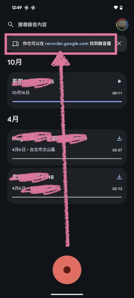 我們除了能在「錄音機工具」中的收藏夾快速找出自己重要的錄音檔,這個收藏夾也會同步到雲端的 recorder.google.com 多一個查找選擇。