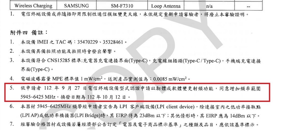 除了 Galaxy Z Flip5,三星目前硬體上支援 Wi-Fi 6E 的機種還包括 Galaxy S23 Ultra、Galaxy S23+、Galaxy S22 Ultra、Galaxy S22+、Galaxy S21 Ultra 5G、Galaxy Z Fold5 以及 Galaxy Z Fold4 等機種,因此預計接下來也會有越來越多審核通過的好消息。