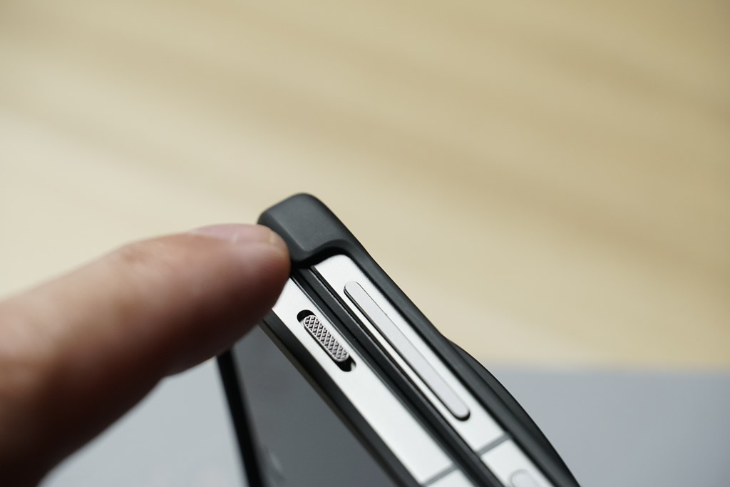 邊框另一側配置電源鍵與音量鍵,電源鍵結合指紋辨識,這也是目前摺疊螢幕手機主流的做法。