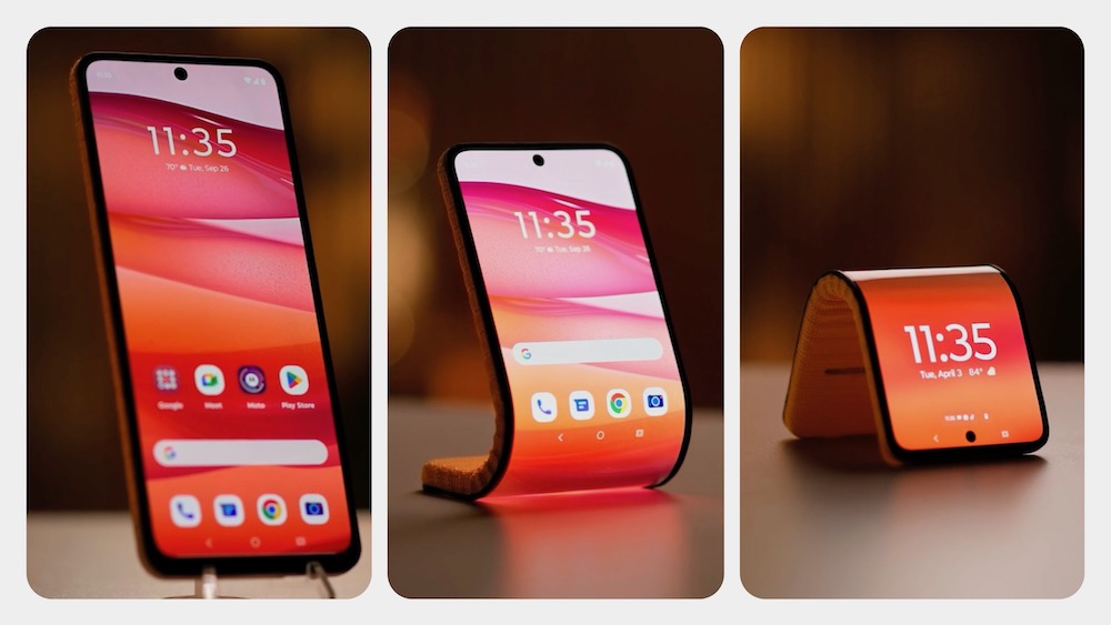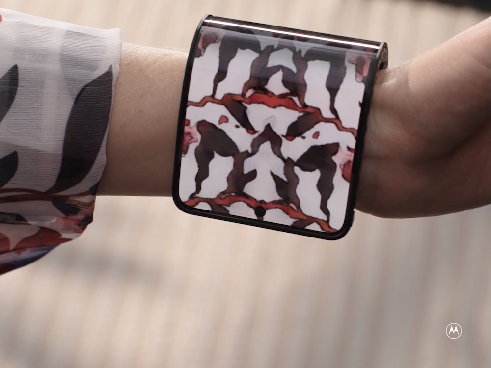 吋螢幕,但卻能像手環一樣捲起來收在手腕上,還能上傳自己的服裝來透過 MotoAI 產生搭配的風格桌布主題來與穿著進行搭配。不過會中並沒有透露這個相當新奇的腕錶型手機量產相關計畫。