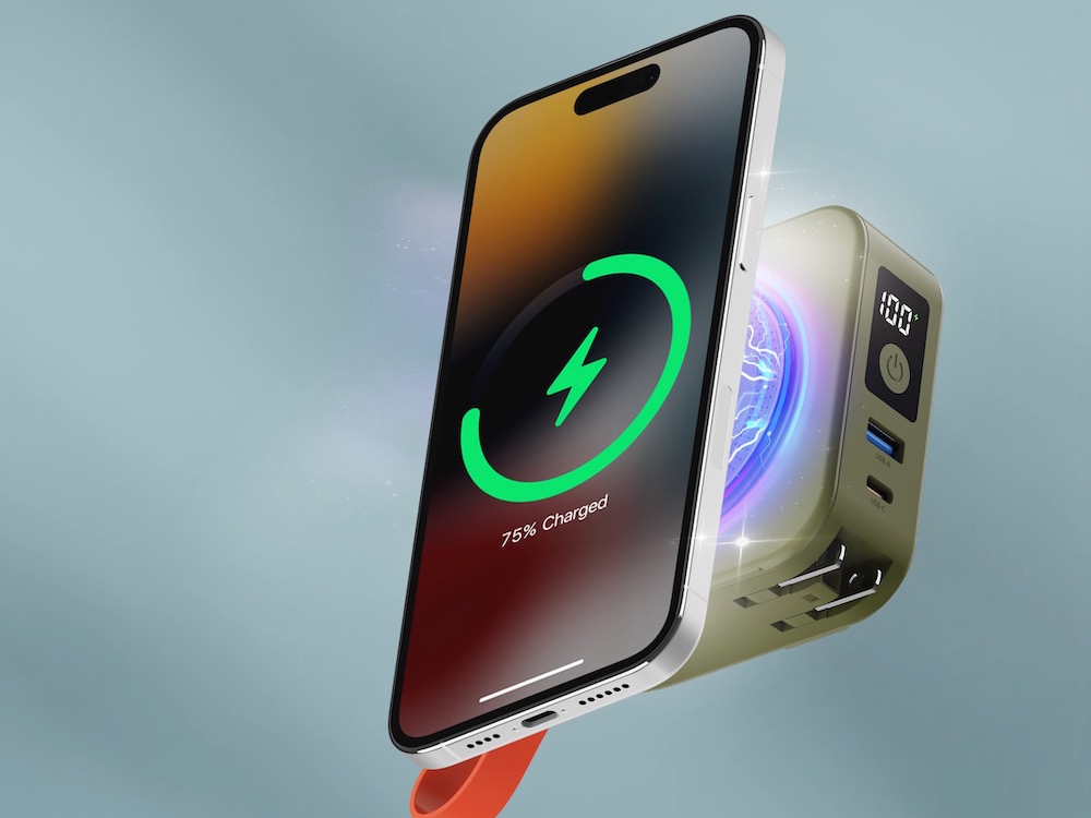 PHILIPS 「放心充」具有 10,000mAh 大容量、MagSafe 磁吸無線充電座(Qi 認證)、支援 PD 和 QC 快充的 USB-C 孔輸入/輸出、USB 孔輸出,與 USB-C/Lightning 自帶線輸出,雙孔雙線加磁吸充電,可一次供 5 台裝置同時充電,機身上 LED 螢幕可觀察電量,機身側拉出支架可擺放手機追劇,而隱藏式 AC 插頭打開就可用於插座充電,並免費附上萬國轉接頭,機身邊角的自帶提把,便攜穩固,外出旅遊一台搞定充電大小事。