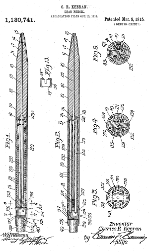 不過有趣的是,幾乎同時美國的 Charles R. Keeran 也開發了一種出芯方式不同但類似的鉛筆,並申請專利與進行改進、生產,後來被現在知名的鋼筆品牌 Wahl Adding 以「Eversharp」為名稱在市場上推出。