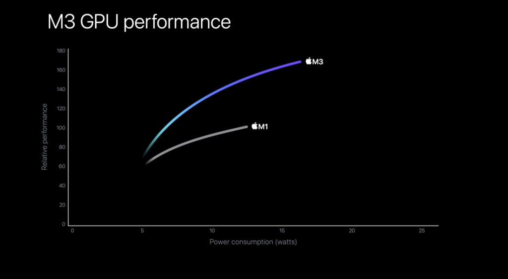 M3 晶片是首款基於 3 奈米架構為 Mac 設計的 Apple 晶片。M3 CPU 的效能核心比 M1 快 30%,比 M2 快 15%。由於採用了新的架構,該晶片的功耗也比以前的晶片更低,基本型號配備 8 核心 CPU 和 10 核心 GPU。