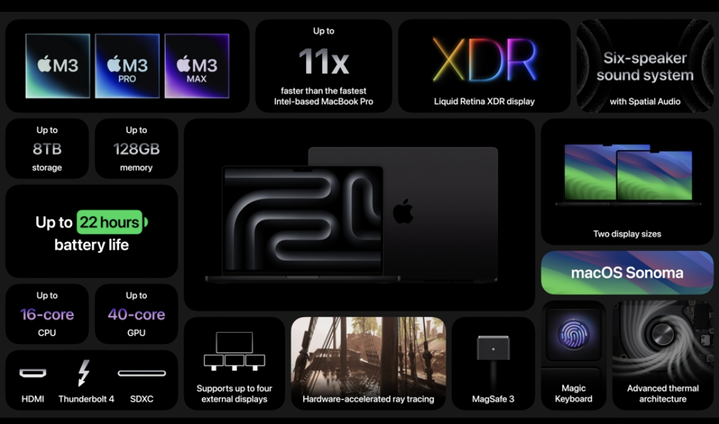 Apple 今天宣布推出採用 M3 晶片的全新 MacBook Pro 系列。