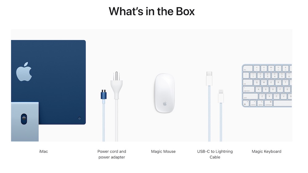 我們知道 Apple 在 iPhone 15 系列已經大動作的將充電埠改為 USB-C,這也讓不少朋友期待蘋果會推出帶有 USB-C 的 Mac 配件,不過從今天的發表會看來似乎並非如此。蘋果在 iMac 24 吋的包裝中,表示了包裝盒內將附Lightning 配件和 Lightning 轉 USB-C 線。