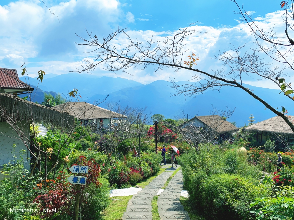 整個優遊吧斯戶外環境維護得相當乾淨,園區裡有咖啡莊園、瑪翡餐廳、咖啡故事館、茅達諾劇團等設施,我們來的時候(10月)多種盛開的花朵,到處蝴蝶飛舞,把優遊吧斯鄒族文化部落妝點的像是座山中花園,搭配一幢幢可愛的茅草屋,很漂亮很好拍。