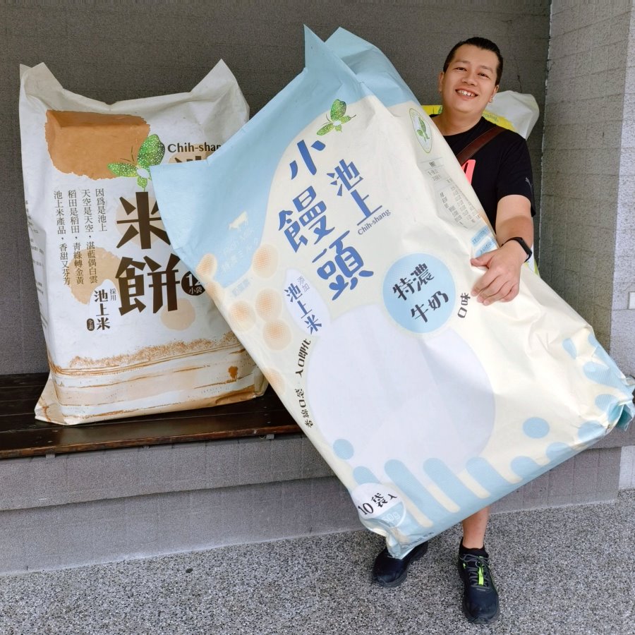 ▼還可以抱起來拍照~~用大口當比例尺就知道這包池上小饅頭有多大包了吧!!都快把大口遮住啦~~
