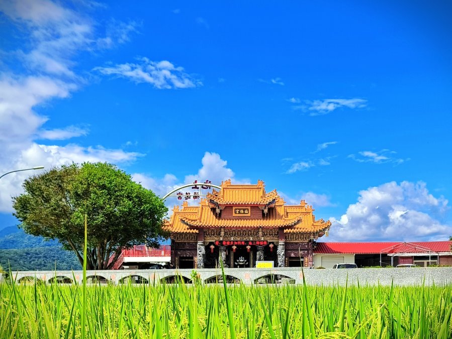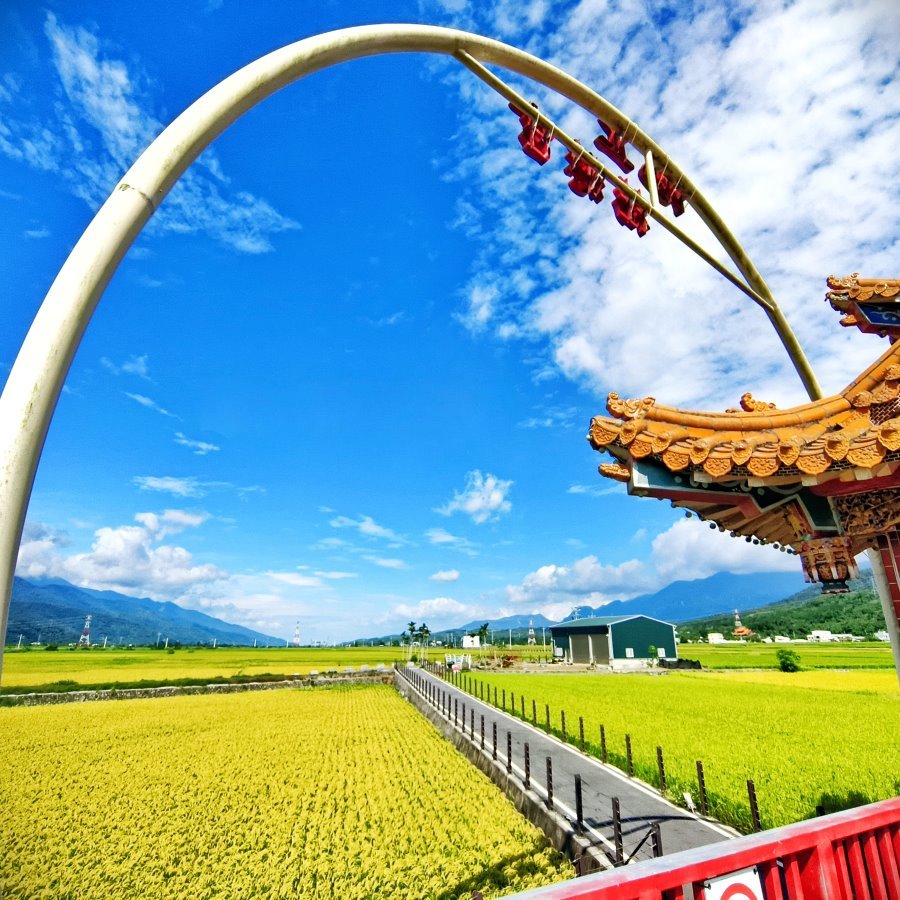 ▼接下來我們來到「池上福德宮」,這裡是臺東縣最大的土地公廟,也因為位處稻田中央,故有「田中央伯公」之稱;金黃稻穗加上藍天白雲,更能襯出福德宮獨特的美好,不時還會有火車呼嘯而過,也吸引不少攝影好手前來捕捉。