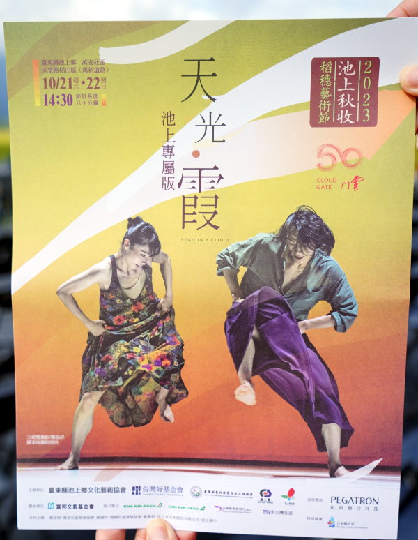 ▼再來就是這次的重頭戲「2023池上秋收稻穗藝術節」活動啦~~展演地點位於池上天堂路稻田區萬新道路上,今年活動已經邁入15週年,由「台灣好基金會」、「池上鄉文化藝術協會」邀請雲門舞集共同打造如此盛會,也吸引不少在地鄉親、外地遊客共襄盛舉,有興趣的朋友明年也可以來參加唷。