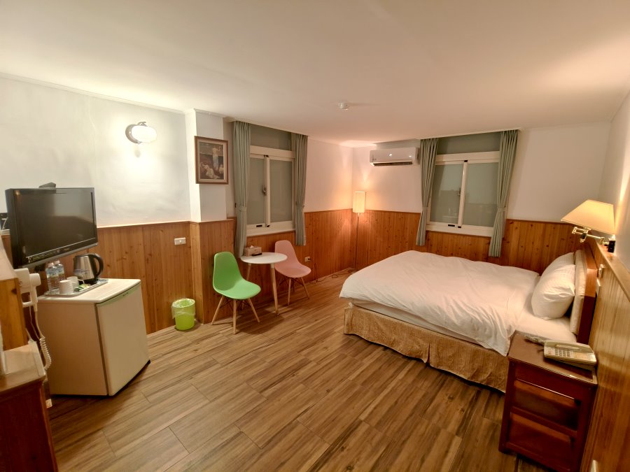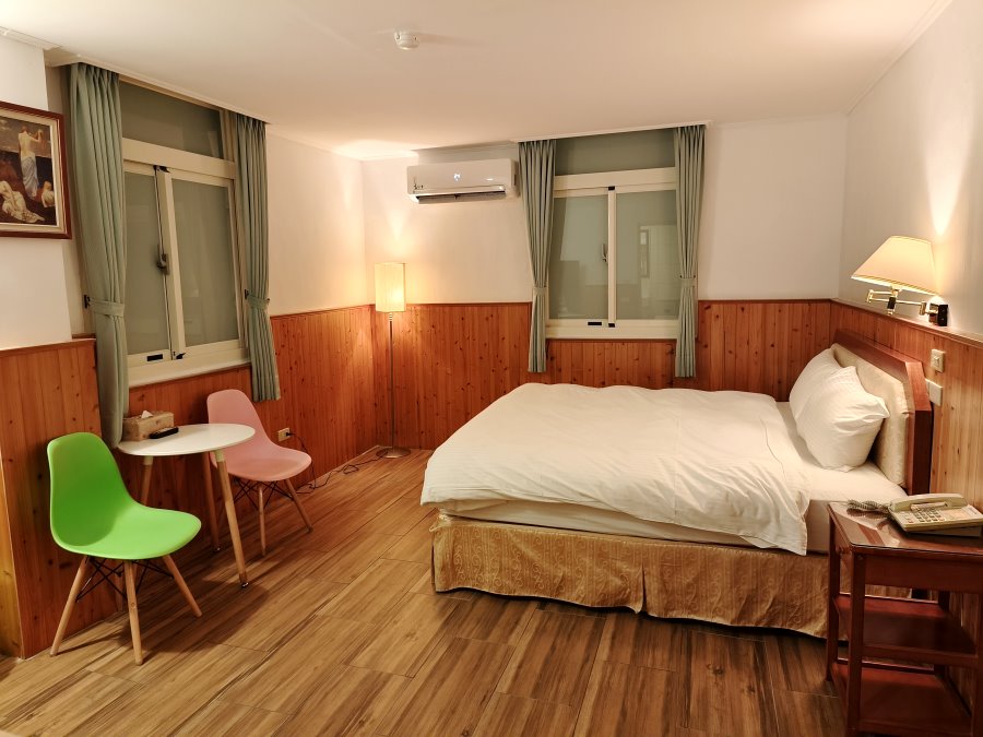 ▼這次住的是豪華雙人房,裡頭簡單乾淨,木質地板搭配簡約桌椅,空間算是很夠用;重點是廁所採用的是免治馬桶,使用起來很方便!