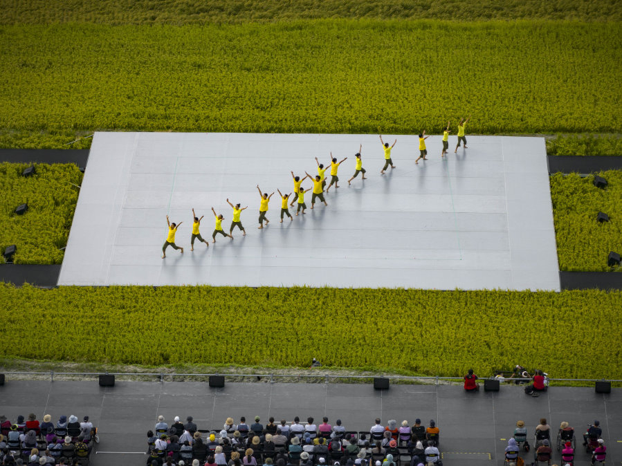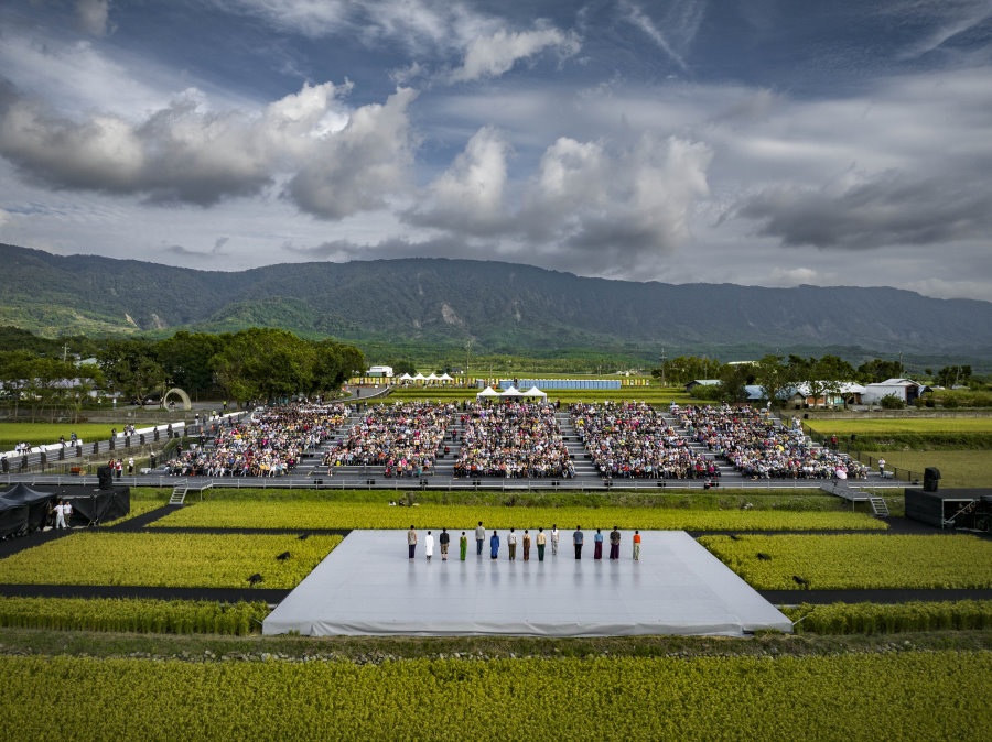 ▼當天的座位區就設立在稻田邊,第一次在離稻穗這麼近的地方欣賞演出,讓人既新鮮又期待!