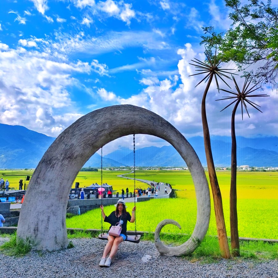 ▼盪鞦韆也是來池上必拍的景點之一,我們來訪兩三次,只有這次的背景是滿滿的稻穗,一定要拍好拍滿的啊!