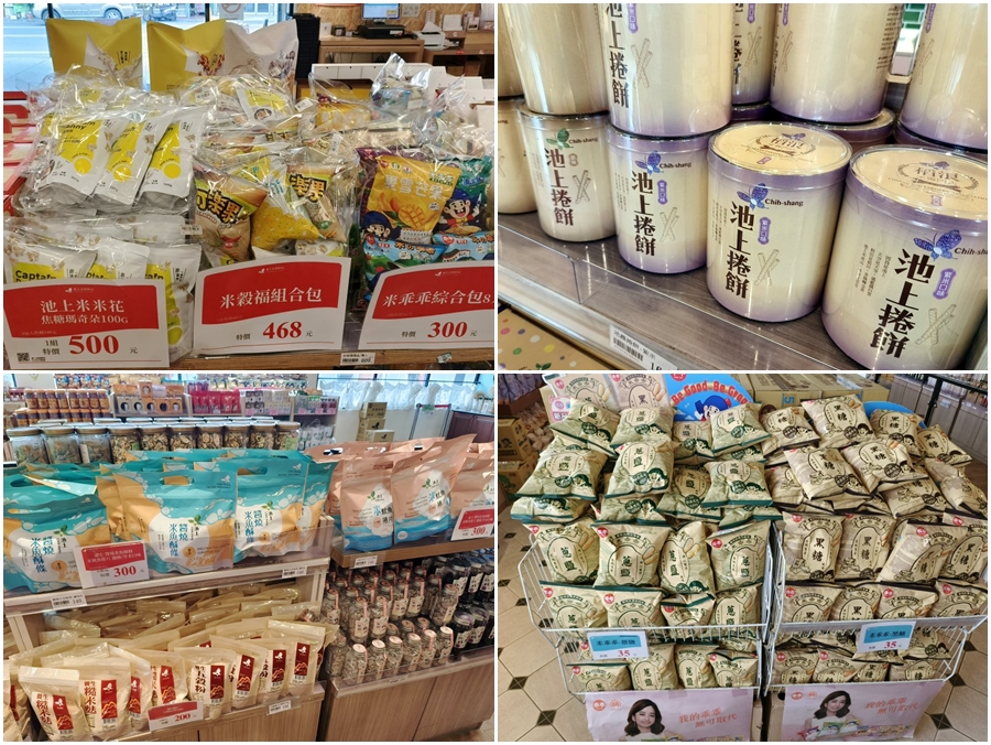 ▼另外各種口味的米乖乖也是非常好買的伴手禮,現場推出綜合包,想吃什麼口味通通有,讓你省去選擇障礙;此外也有池上捲餅、米魚酥條等相關米糧製品,買回家自己享用或是送禮都很不錯!